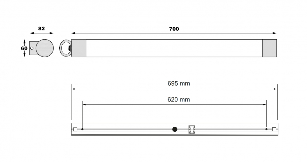 Bakstycke mått 695mm - Hålmått för montering 620mm mellan hålen.