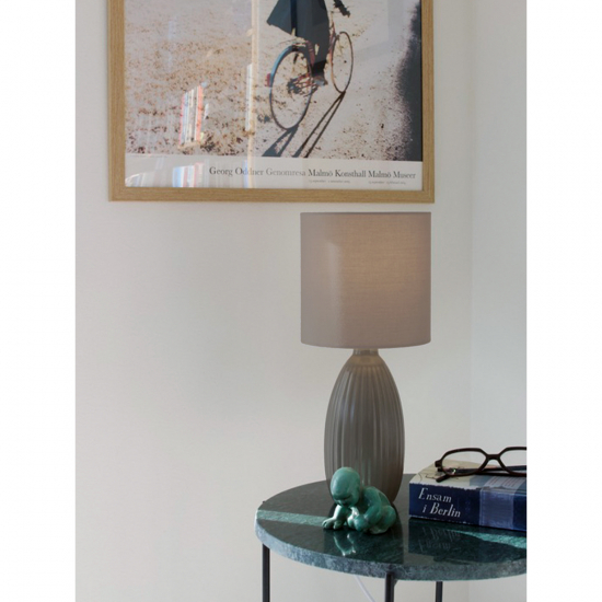 Bordlampan är gjord i keramik med en matt, enfärgad lampstomme/fot.