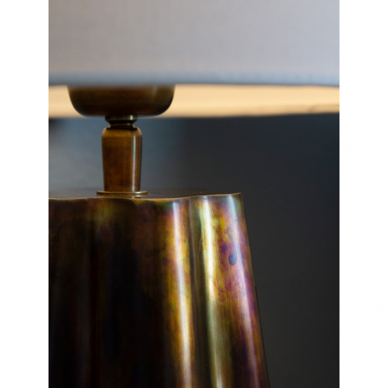 Den brända mässingsfinishen ger lampfoten ett varmt och inbjudande utseende.