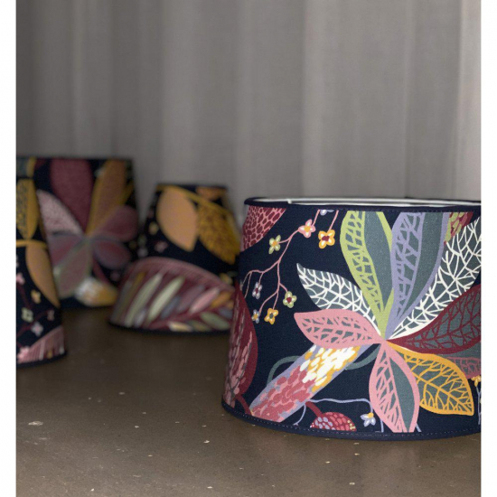 Lampskärmen har en ljus insida och ger ett behagligt sken och är lätt att matcha med olika lampfötter.