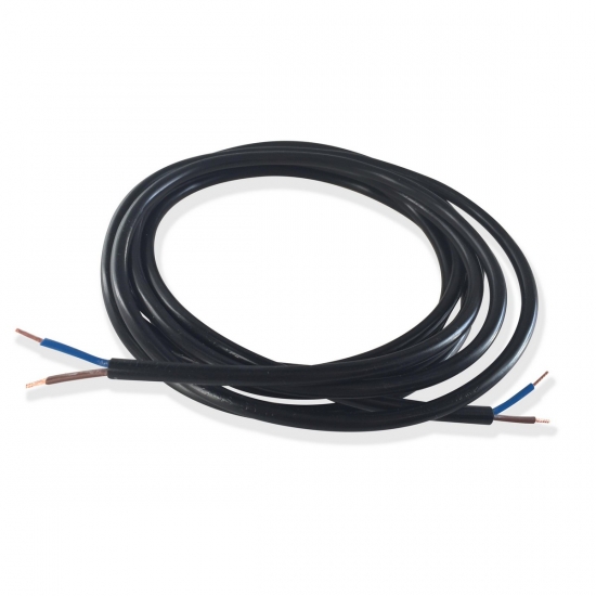 Två trådig rund kabel i PVC, typ SKK 300V, 2x0,75 ledare.