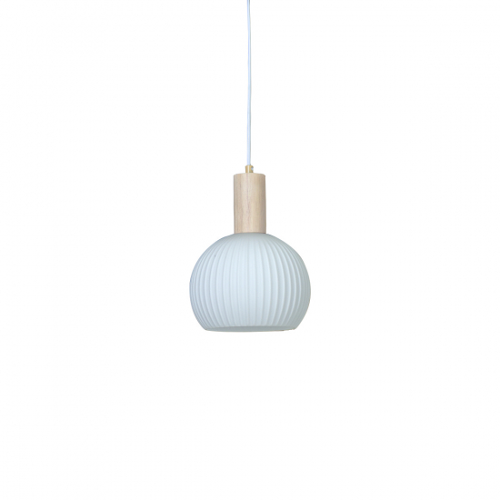 Med sin räfflade glaskupa som skapar den ett jämnt och mjukt ljus samt med träinslaget ovanför glaset blir det stilfullt val med skandinavisk design.