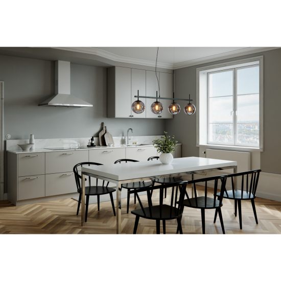 Med en längd på 117cm och diameter på 18cm på glaset, passar den perfekt över ett stort matbord eller bardisk.