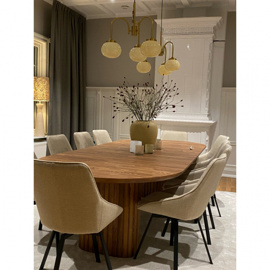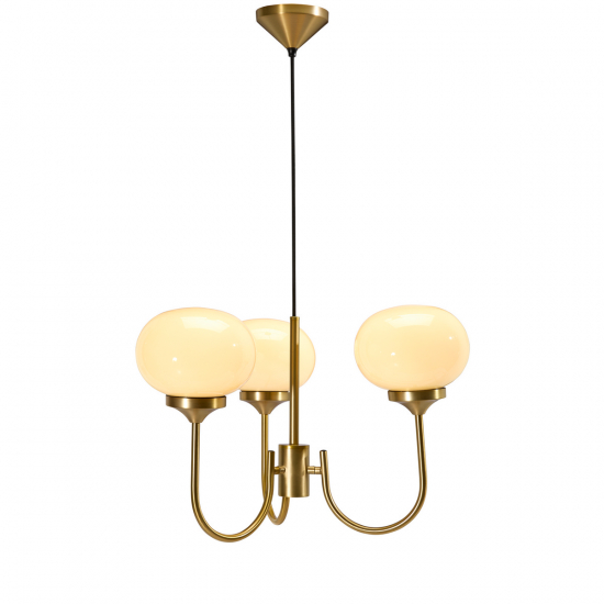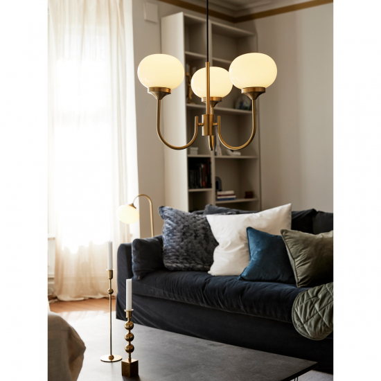 Metallstommen är mässingpläterad och färgen på glaset är krämfärgad och ger ett varmt och ombonat ljussken när lampan är tänd.