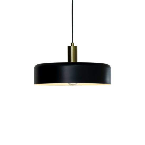 I stilrent utförande med skärm i svartlackerad metall och detaljer i matt mässing.