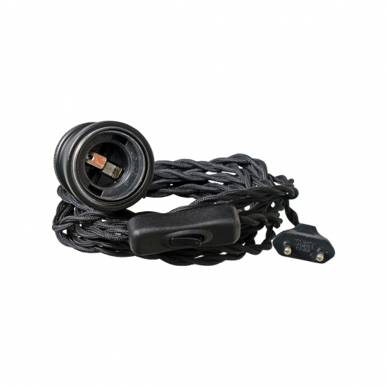 Textilkabeln är 4m lång och har en strömbrytare på sladden och en europastickpropp för anslutning till ett vägguttag.
