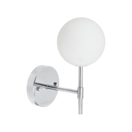 Vägglampa i minimalisk design med opalglas och metallstomme. Den är fuktskyddad i IP23 klassning och passar bra i badrumsmiljöer. Eftersom glasskärmen är handgjord kan det förekomma enstaka luftbubblor i glaset samt en viss ojämnhet i glastjocklek över glasytan. Observera att denna armatur är för fast installation och att det inte medföljer någon separata kontaktdon och anslutningskabel. Storlek 25x12x19cm. Ljuskälla av typ dimbar LED G9, 230V, 3000K, 1 st ingår.